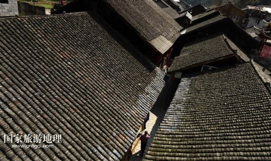 用布瓦覆蓋的慶陽(yáng)古街吊腳樓錯(cuò)落有致(3月27日攝)。