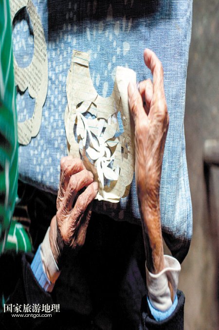 剪紙模、包邊、拼圖、刺繡……在自己出生的老屋里,何娟和奶奶一邊繡拼布繡,一邊拉著家常。青筋畢露的老手,細滑如胰的新手,一樣的手勢,手藝在潛移默化中傳承。