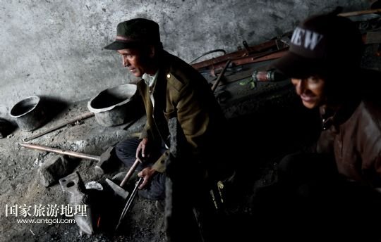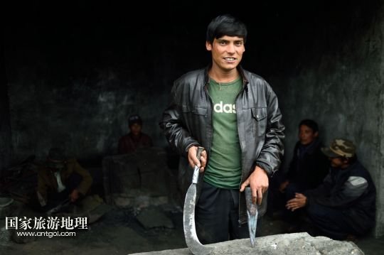 7月17日,扎西頓珠(左)、索朗次仁在達曼村的鐵匠鋪內打鐵。