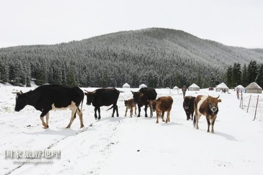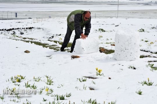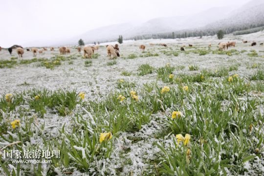 國家旅游地理 新疆哈密5月31日訊 5月31日,新疆哈密一位牧民在雪中放牧。當日,受冷空氣影響,新疆哈密北部沿天山一帶出現(xiàn)了降雪降溫天氣,給五月的天山披上銀裝。 /新華社發(fā)(普拉提 攝)