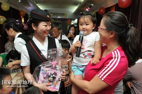 國家旅游地理 寧夏銀川6月1日訊 5月31日晚上,蘭州鐵路局銀川客運段寧夏號列車上的一線乘務(wù)人員為乘坐列車的孩子們舉辦了一場“歡慶六一”迷你晚會,通過才藝展示和贈送小禮品,讓旅途中的孩子們感受到溫暖和歡樂。新華社記者 彭昭之 攝