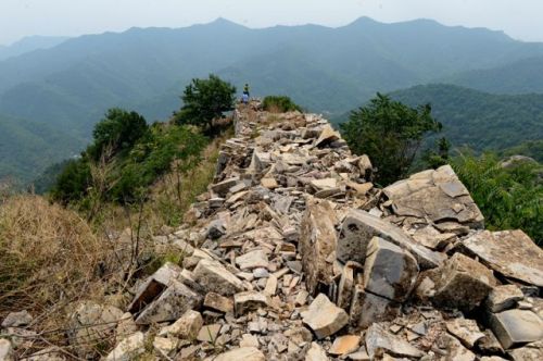 2015年7月9日,河北省懷來縣境內一古長城烽火臺頂部已成為碎石堆。新華社記者牟宇 攝