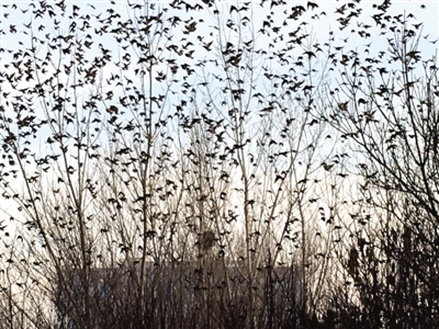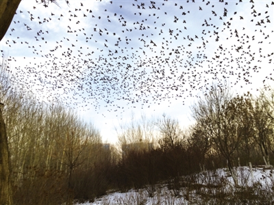2015年12月30日下午,我在銀川市興慶區(qū)北塔公園游覽。走到北塔東北的樹林邊,突然看見一棵有些怪異的樹——數(shù)九寒冬,為何還有這么多樹葉?仔細(xì)一瞧,哪是什么樹葉,是數(shù)千只麻雀在樹上“開會”。密密麻麻,嘰嘰喳喳,無拘無束。我拿出手機(jī),剛拍了幾張,不知是聽了什么號令,麻雀們“散會”了,瞬間全部飛向藍(lán)天,一個個狀如小飛機(jī)??吹贸觯槿競兺ο矚g銀川,活得挺自在。(通訊員 蓮子)