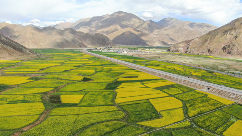 西藏各地的油菜花盛開,呈現(xiàn)出生機(jī)勃勃的夏日美景