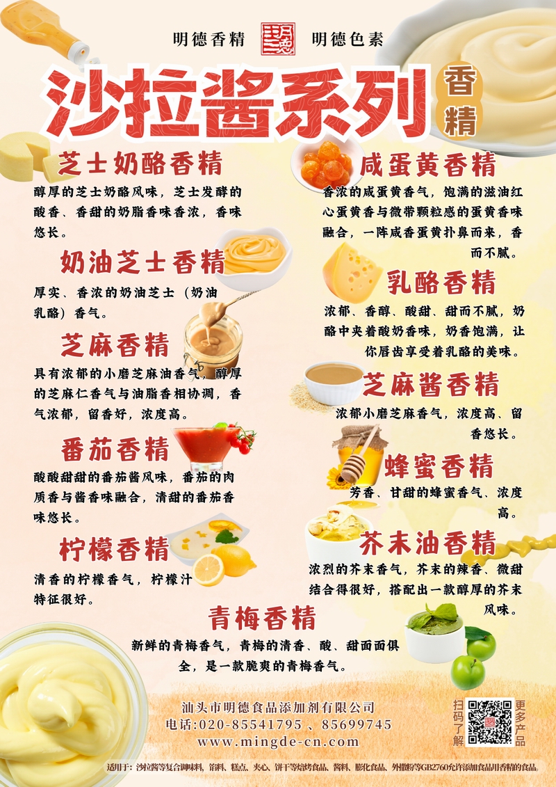 明德沙拉醬系列香精 多樣沙拉醬風(fēng)味 適配多類(lèi)食品工廠汕頭市明德食品添加劑有限公司推出的沙拉醬系列香精,涵蓋芝士、蛋黃、芝麻、果蔬及特色風(fēng)味,適用于調(diào)味醬、焙烤制品、休閑食品等多個(gè)工業(yè)應(yīng)用場(chǎng)景,助力B端工廠實(shí)現(xiàn)風(fēng)味的穩(wěn)定性與差異化,讓產(chǎn)品在市場(chǎng)中脫穎而出。