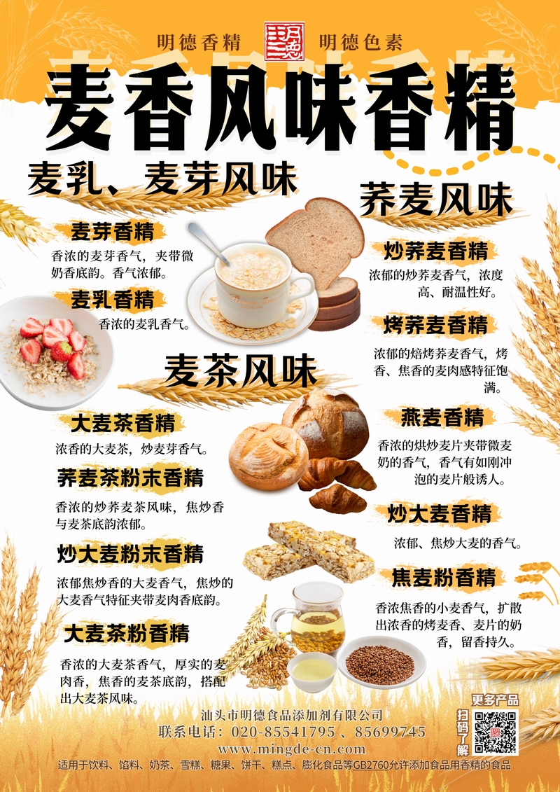 明德麥香風(fēng)味香精 谷物焙香 層次飽滿汕頭市明德食品添加劑有限公司推出的麥香風(fēng)味香精系列,覆蓋麥乳、麥芽、蕎麥、大麥茶、燕麥、小麥粉等多種谷物調(diào)性。產(chǎn)品風(fēng)味真實、層次清晰,留香穩(wěn)定,適用于飲料、雪糕、糖果、烘焙與休閑零食等B端應(yīng)用,幫助工廠快速打造具有記憶點的麥香風(fēng)味。